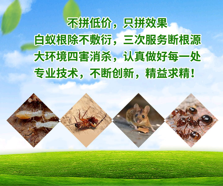 公司主要承接:广州白蚁防治,花都新建房屋预防白蚁工程,白云室内装修预防白蚁工程,天河杀灭白蚁,海珠房屋杀白蚁,荔湾家庭杀灭白蚁服务,芳村厂区仓库灭治白蚁工程,住宅小区、花园别墅灭治白蚁工程,广州花都水库堤坝白蚁防治,园林、古树白蚁防治。广州白云四害消杀,广州天河除四害(蚊、蝇、蟑螂、老鼠)消杀工程,广州金沙洲厂区四害消杀,广州白云厂房除四害服务,广州花都街道四害消杀工程,白云石井厂区杀虫灭老鼠,各种环境大型灭老鼠工程,室外草坪绿化大面积杀灭红火蚁服务。本公司服务遍布整个广州与佛山地区白蚁防治工程、别墅白蚁灭治工程、工厂企业防治白蚁工程、园林水库白蚁防治。本公司是广州白蚁防治的专家,现有先进的白蚁防治与消灭白蚁的技术,多年的白蚁防治技术与经验,所以值得信赖。